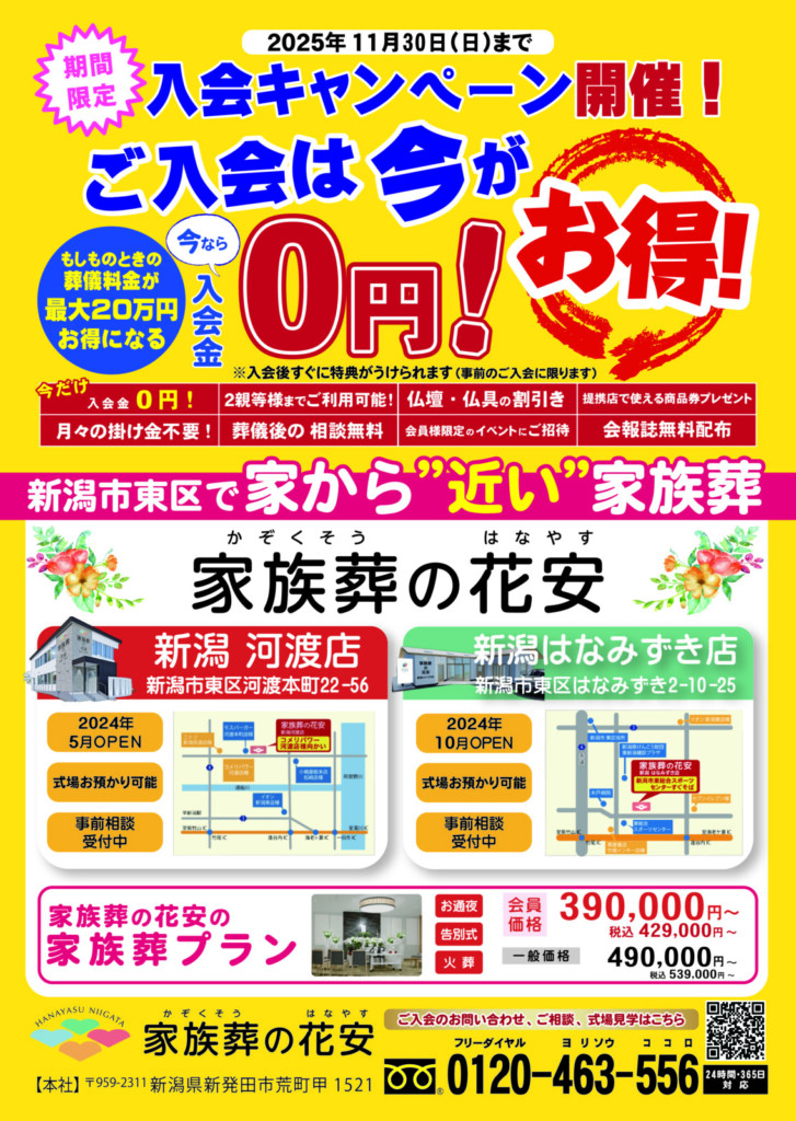 家族葬の花安 新潟はなみずき店 秋の大感謝祭開催! | 新潟市の葬儀・葬式なら家族葬の花安